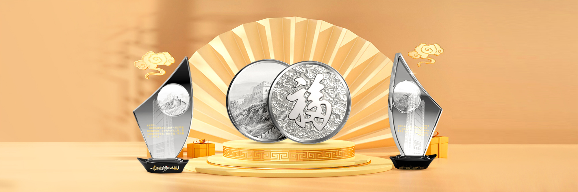 專為企事政類的客戶一站式金銀制品定制解決方案:周年慶典,公司年會,開業(yè)上市,學校團體,商務饋贈,優(yōu)秀員工獎勵表彰,部隊優(yōu)秀士兵獎勵,抗戰(zhàn)老兵緬懷,感恩回饋,等多種場合定做,公司擁有自己的開模師、工藝師,生產(chǎn)工廠,告知我們要求最快當天可出稿大大縮短周期,金銀料價格按照當天上海黃金交易所公布為準,杜絕中間商加價。