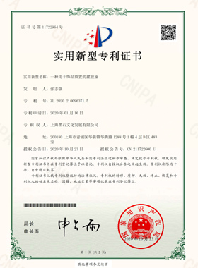 飾品放置擺放專利證書
