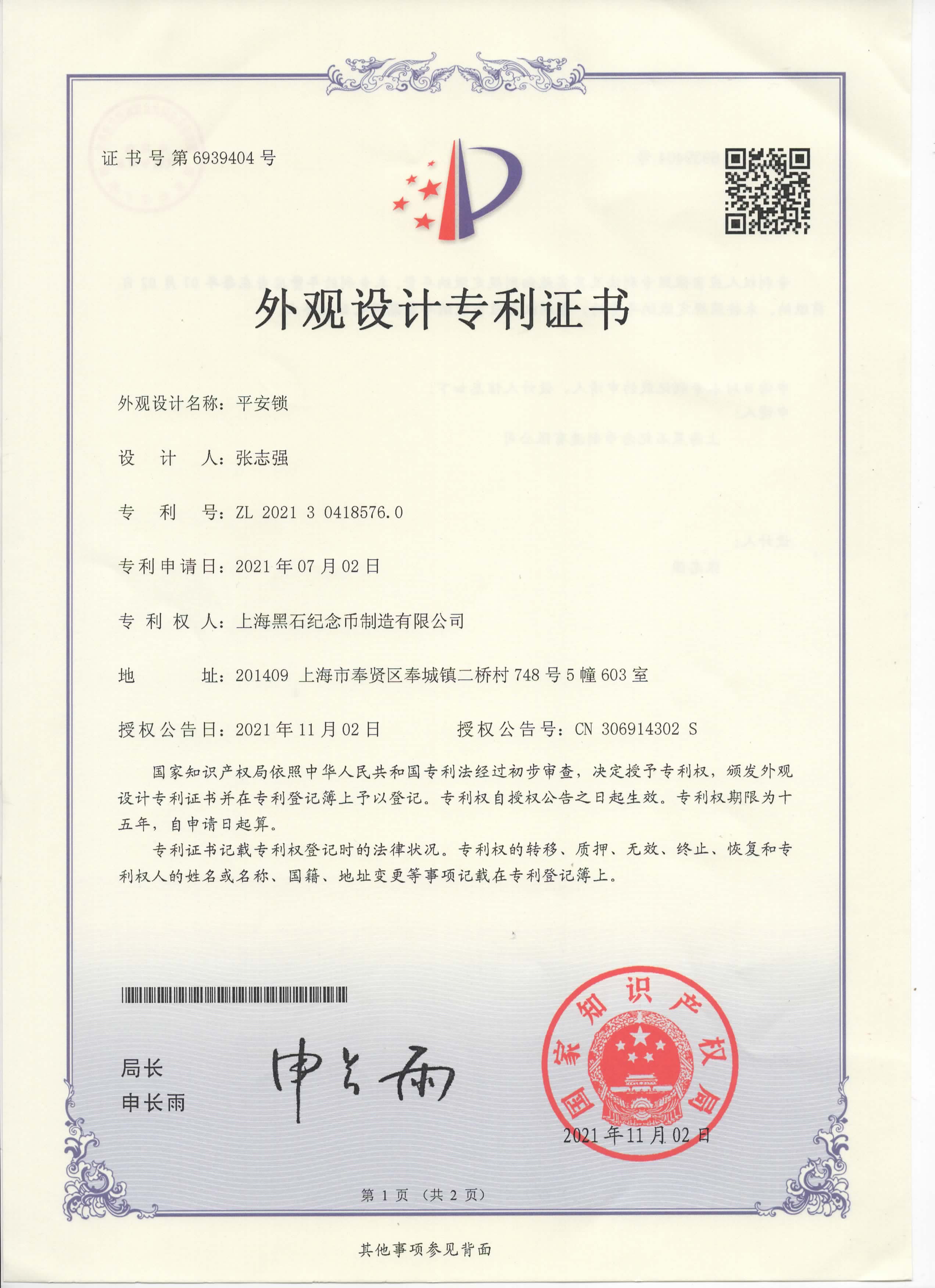 超過300萬枚紀念幣定制的歷練,擁有行業(yè)內(nèi)強大的研發(fā)生產(chǎn)設計能力·榮獲多項專利證書